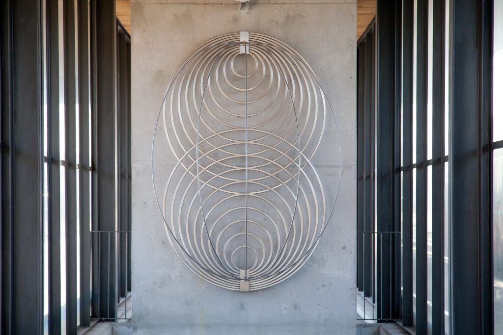 Lahtelaistaiteilija Matti Koskelan teräsreliefit Connections I ja II on sijoitettu Rautatieasemalle laitureille johtavien portaikkojen yläpuolelle. Abstraktit, pyöreistä muodoista rakentuvat teokset on suunniteltu varta vasten tälle paikalle tarkoituksenaan toivottaa Lahteen saapuvat matkustajat tervetulleiksi ja antamaan moderni ja mielenkiintoa herättävä ensivaikutelma Lahden kaupungista. Kaupungin taidekokoelmaan teokset päätyivät lopulta lahjoituksena.