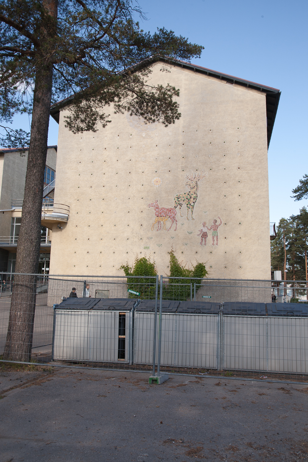 Kärpäsen peruskoulun ulkoseinässä. – Kasakkamäentie 1, Lahti.