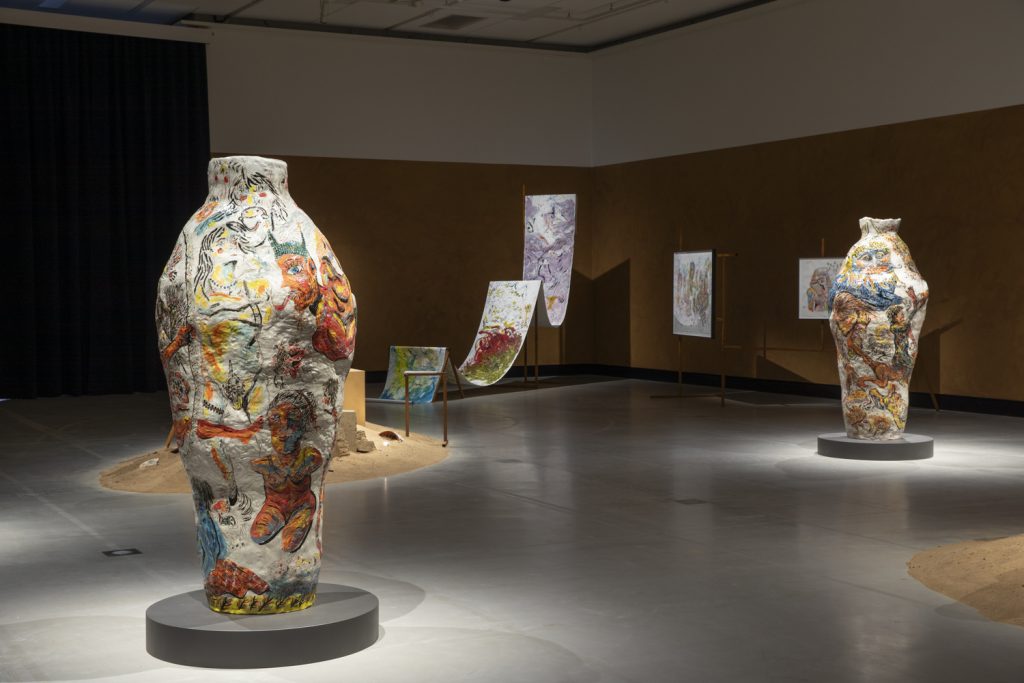 Lahden visuaalisten taiteiden museo Malvassa 10.4. avautuva Karim Boumjimarin Rakkauden riitit -näyttely esittelee keraamisia veistoksia, suurikokoisia piirroksia sekä runollisen Kevään jäljet -videoteoksen ensiesityksen. Voimakkaat teokset hehkuvat rituaalista energiaa ja tuovat esiin laajan joukon villejä ja paljaita hahmoja.