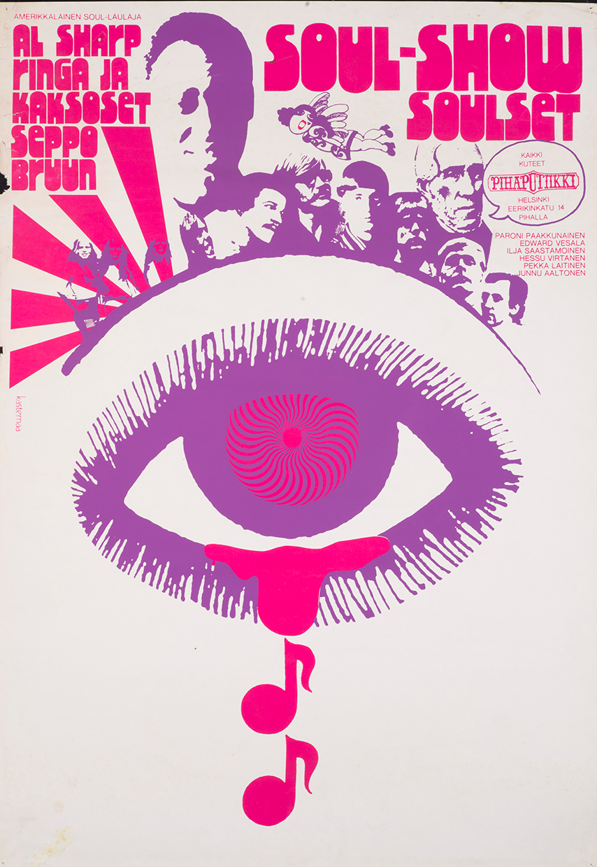 – Erityisesti 1960-luvun psykedeelisen aikakauden julisteet ja taidokkaasti piirretyt luonnokset ovat todella upea lisä Malvassa jo entuudestaan olevaan Kastemaan 250 julisteen kokonaisuuteen, kertoo Malvan julistekokoelmasta vastaava kokoelma-amanuenssi Hanna Suihko.